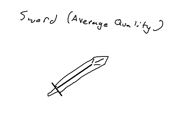 You enter the blacksmithy, and find your brother hard at work on his latest creation. He turns to you and asks what brings you here. You explain that you need a sword to go rescue the people from the ruins. With a grumble about free loading siblings, he heads to the back of the store to check the available stock. Thistle Glen isn't a violent town, and as such most of the work at the shop are usually stuff like horseshoes and axe heads. A couple minutes later, he returns with a sword, a lightly old one apparently. He explains it's the only one he can give you, as they only have a few, and his boss won't let him just give out stock usually. none the less, sword acquired!