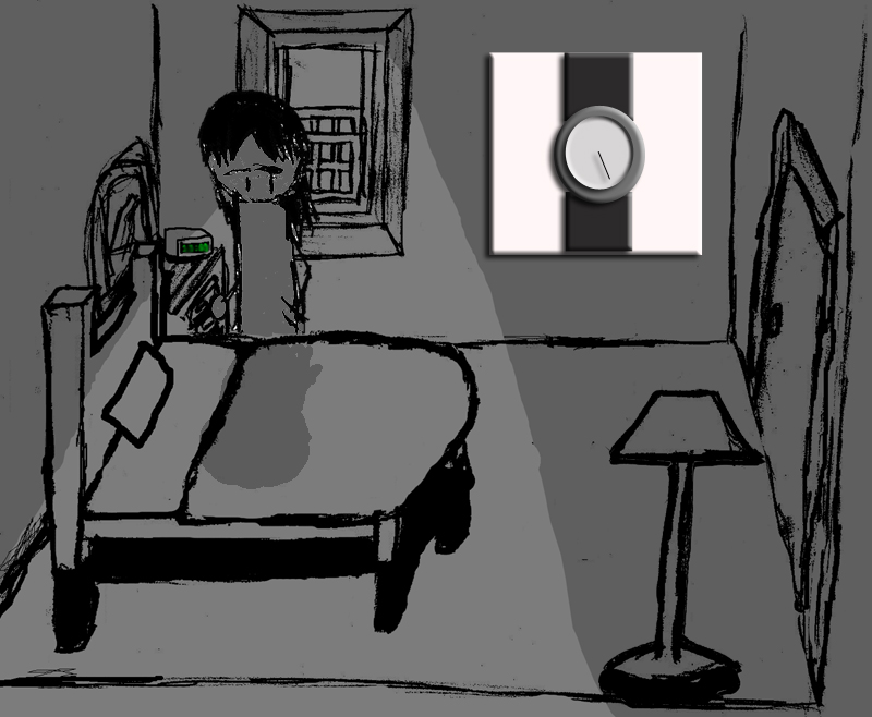 Next off, I didn't know what was going to happen when you exited the hour, but I found out. Oh boy, did I find out. I stay here, and time goes by, even though everything is frozen. It's hard to tell, but I think a day has gone by. Has a day gone by in your world?" You nod.