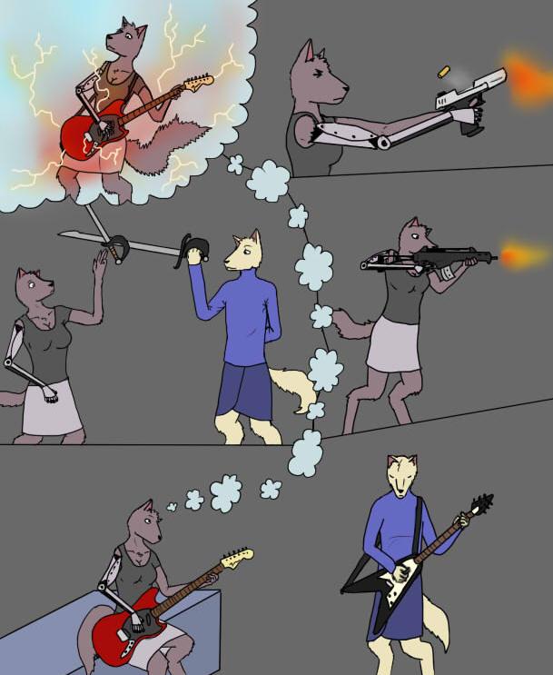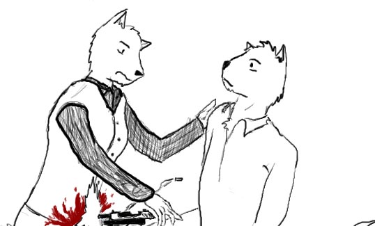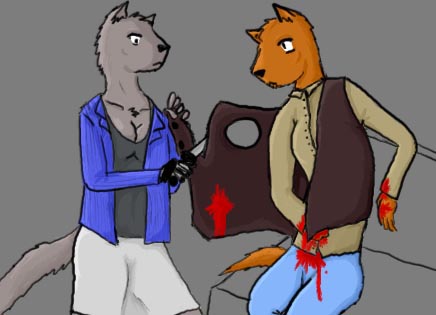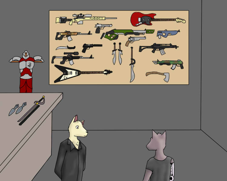 "Well, ah, no," Caril says. "Of course not. You can keep your gun, then. You'll still have to relinquish it for the actual transaction with the Knife. Hm. True, before and after your meeting it wouldn't hurt to have some protection. You needn't fear that the Knife would do anything to you during it, though. He is known to be a man of honor, ah, as much as a person in his position can be, and, well, doing unpleasant things to your customers is just bad for business."
