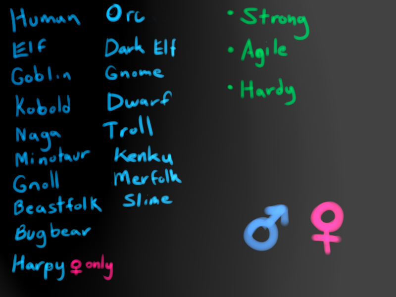 Dark Elf, Harpy, Beastfolk, Kenku...