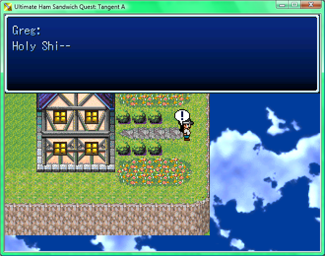 Greg bit down onto his bottom lip and continued to think the situation over. The more he mentally measured the distance, the more he realized he could make it onto the roof with one magnificent leap, but he wasn't for sure how bad the outcome would be. In theory, he could even crash through the roof, albeit its blue tiles looked sturdy and capable of holding his mass.