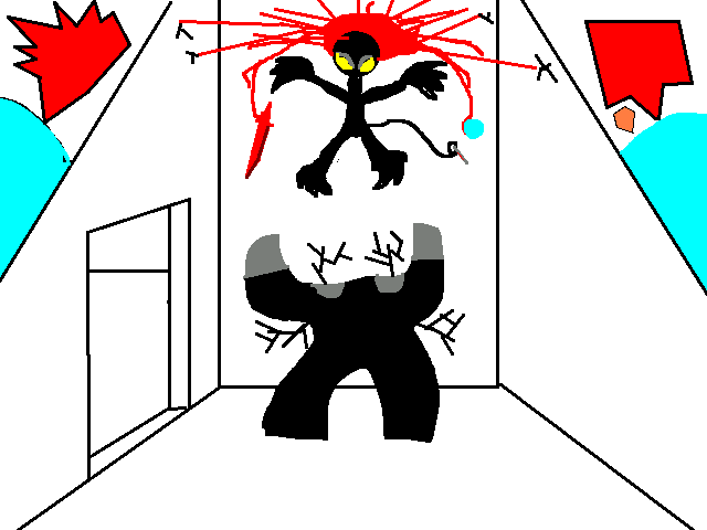 With a scream, the creature throws the furniture to the back of the room, blue lines appearing breifly upon them as they lift up and nearly slam into me.