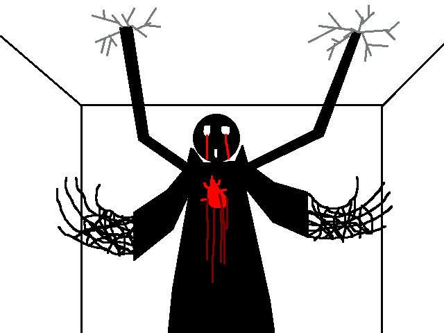 Even as I turn to attack the scientist I thought dead, his body twitches out of the way, pulled from my assault by an ebony tentacle. And another tears free from his back, pulling him to the ceiling as his robe blackens, and then I realize... it's the man's skin, pulled from beneath the cloak, stretched and mutated until it takes the form of a gristly robe. His eyes vanish into his skull, his mouth agape as blood runs down his cheeks. His hands warp, and as I watch, the skin upon them peeled away, then the muscle, then the bone itself melts into black ooze that reforms into long tendrils that reshape into vile mockeries of hands.