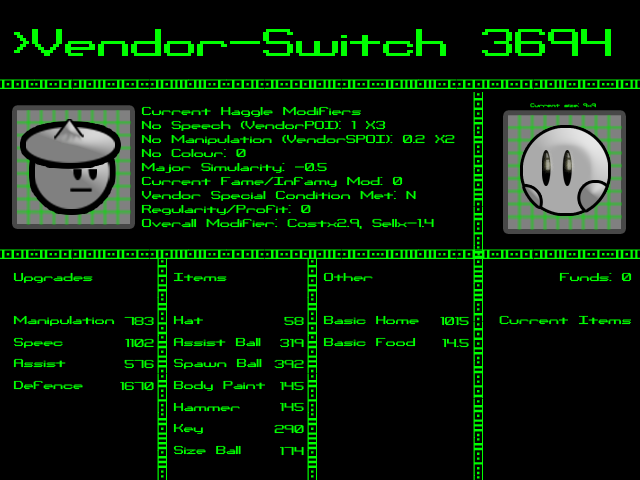 [Your Fame/Infamy, Colour, Simularity to the Vendor, regularity of vendor Haggling and Profit gained from Haggled or given items to the Vendor all affect your Haggle Modifiers.]