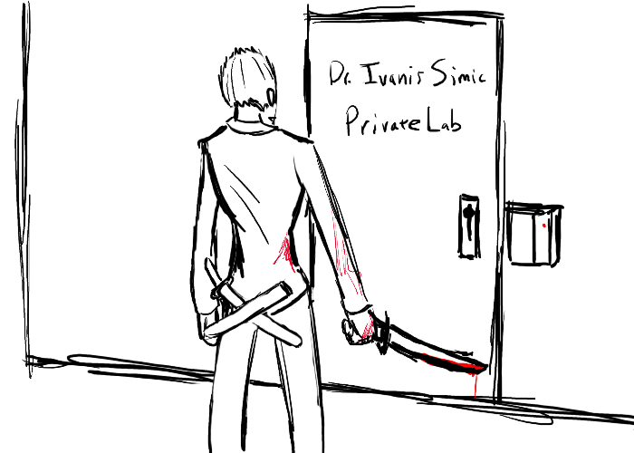 >It has been 20 minutes since the last chapter end. Kal Royale has not left his base. He has equipped himself with some sort of kevlar-like body armor, as well as a pair of swords that look like katana, but are only about 3 feet long.