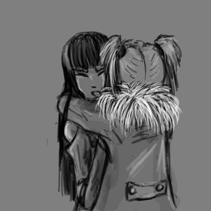 “C’mon, let’s get out of here.” She laughs, grabbing you by the hand and tugging you forward once more, but this time it’s a playful pull “My house is only a few more blocks away, not too far at all!”