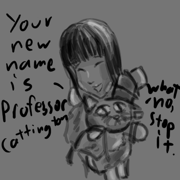 “Well, I was wondering…” You begin, squeezing Professor Cattington with a tinge of annoyance.