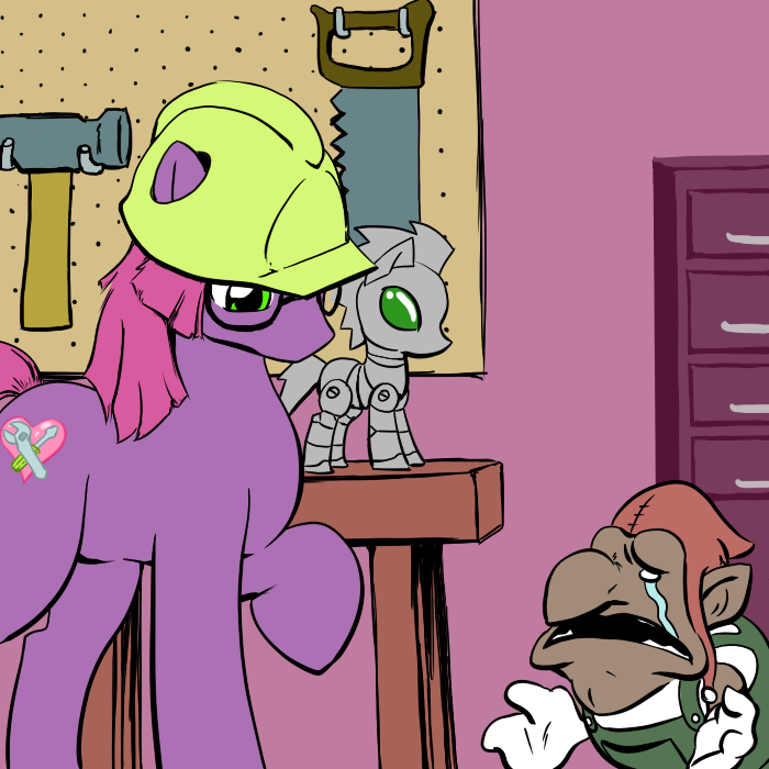 But, I don't call myself "Tinker," you must be thinking of some other pony, since my name is Heart Fixer. Also, I didn't make Hug Box, he was a gift from a traveling wizard that I got a long time ago. I also don't know how to modify him at the moment, I just know how to fix things.