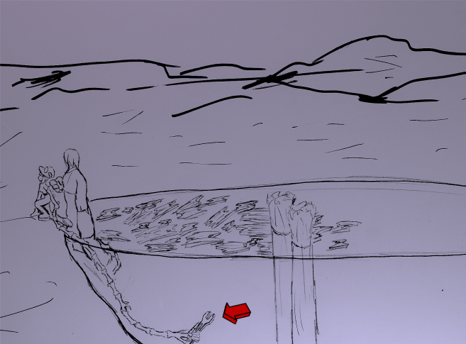 Make sure you pull the wrench and whip out of the water after you push him in. Because you're going to need those two so you can hit him every time he pops up for air or something.