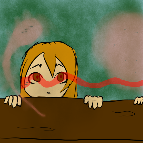 Siisa asks me something, but I'm too distracted to catch what she says. As I shift myself, I catch another glimpse of red, this one is coming from behind me. I turn my head to see better, and I see Siisa and the Soul Thief.