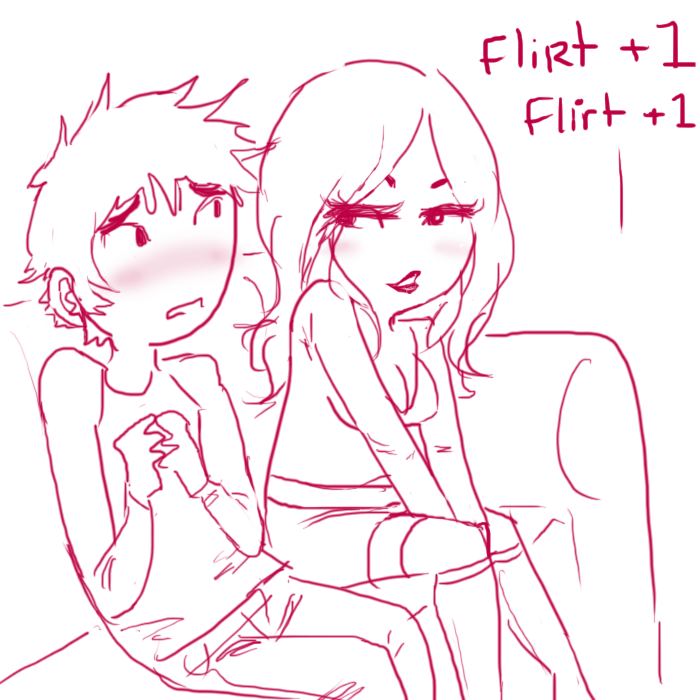 >BOY 2 blushes more and plays with his fingers nervously.