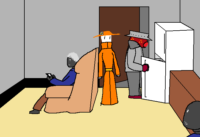 trip over it. Now, stand to the right of the Large crate and use the WOODEN DAGGER-SHEILD