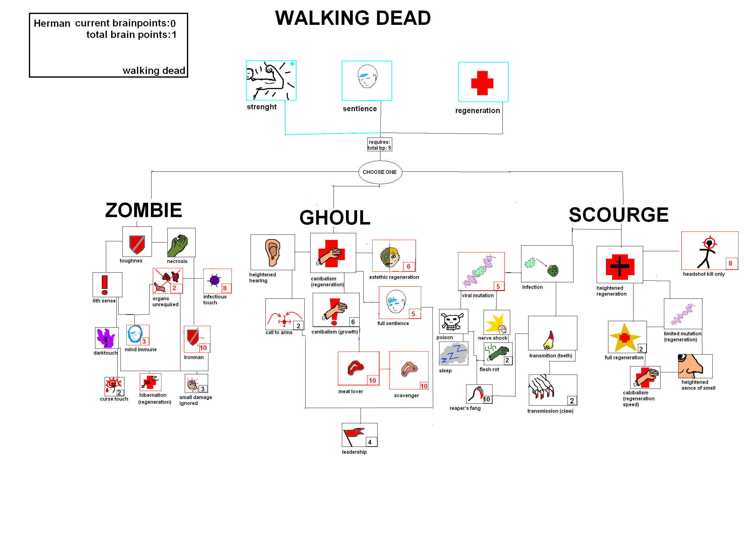 infectious touch- you are so full of disease, parasites and anything else living in your rotten hide that comming in contact with a living creature's open wound will automatically cause it to infect, useles in combat, except against reoccuring enemys