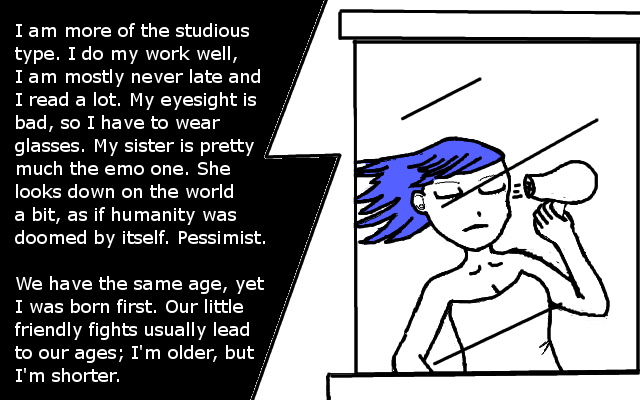 Akane entered the school. Oh, it was math class... it was so easy, she already did every homework of the year, she read all the book and was finished with it. Should she go there anyway like a good little girl, or should she skip classes to wander about?