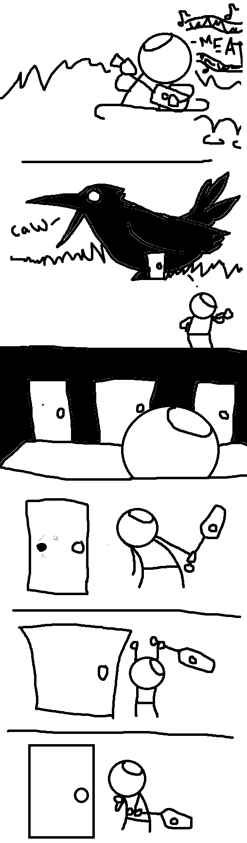 Ah yes, the good land of piles'o'dung, if it weren't for this place i'd be living on the beaches in hawaii... can't believe i stepped in fresh crust... stupid crap mountains... just gotta keep going, specially for those provisions in crow base...