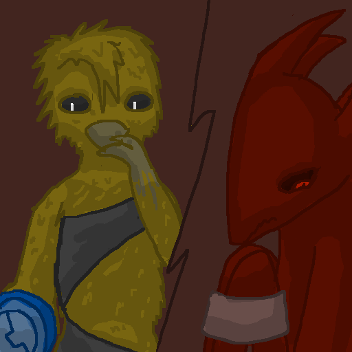 Eezeree looks firmly at him, and he finds it difficult to read her expression. Anger, disappointment, remorse? Zi stares just as harshly at Eezeree, before tapping her beak with a free hand. "I did warn him about putting two salazzarine in the same cell. Well, we can soon correct that obvious mistake. Take 204 to BR, and take 206 to isolation."