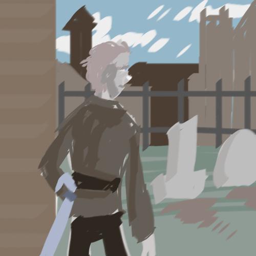 The gate enclosed area is littered with grave stones of varying sizes. Not too far away is the empty grave awaiting John Casper's coffin. Beyond the gates you can see glorious town of Eldrelan. This graveyard is located beside Eldrelan's grand cathedral, the largest and fanciest place of worship on this continent. Probably the world, but they don't want to brag too much.