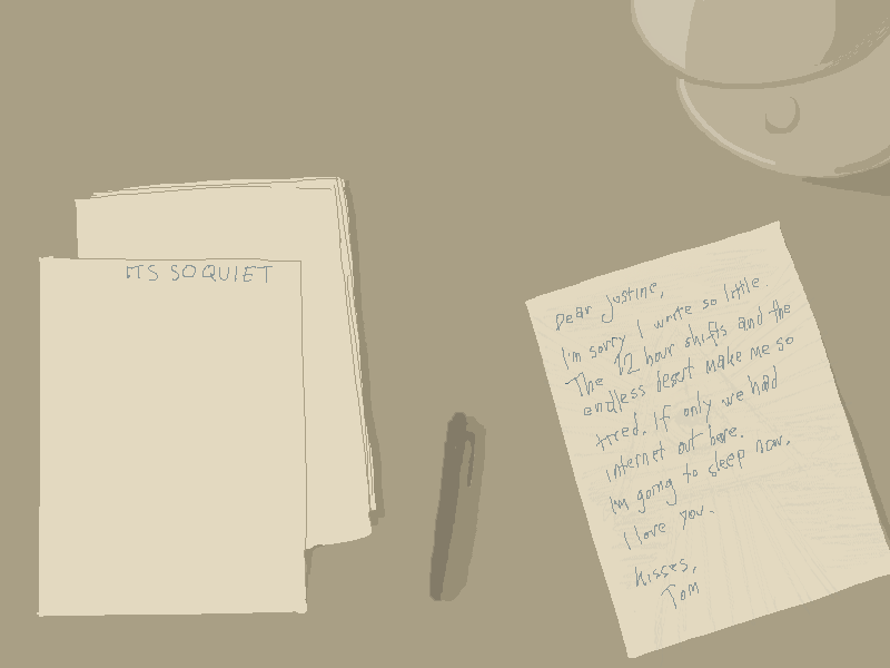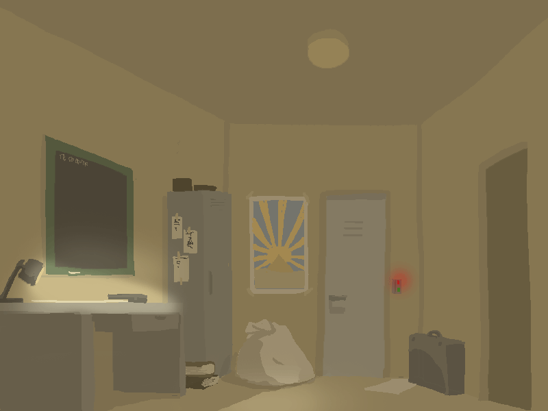 You hear shuffling and a click above.