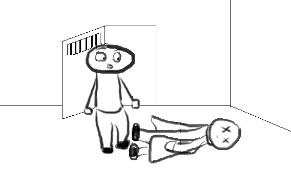 Now that you mention it, he was planning on taking Jimmy away from you. Loosen the necklace and take it back from him. He doesn't deserve such an awesome thing. And take his lab coat too. That will show him. You did a very good job Thomas, keep it up! Take anything else that was in his possession, like keys or an ID card. Then arrange his body in a sleeping position, so he doesn't wake up uncomfortable. Put the lab coat on, take a closer look at his ID card if he has one, and leave the cell. Then shut the door. Follow my advice or bad stuff might happen.