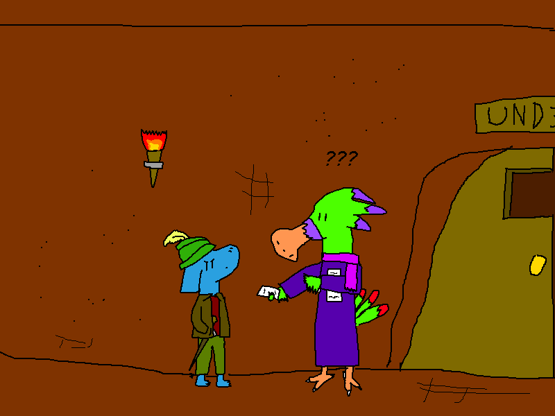 Gnoll: "I still won't tell you anything. Besides my partner is probably done tal-"