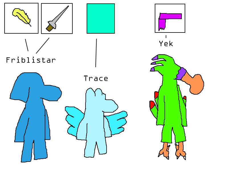 Trace: "I worked hard on my color scheme! Also, I WILL PERSONALLY IGNORE YOU IF YOU MAKE A STEVE JOKE. IT IS OLD."