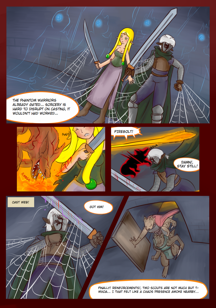 The mighty hero stode upon the battle field, slaughtering all who came berore him with his quicksilver blade, given him by the king of the elves. the weapon screamed its fury as it lashed out, thirsting for blood like the first great predators of the world. the hero's opponents scattered and fled rather than face his great blade, and he stood at last facing their leader, the witch queen of the gnolls.
