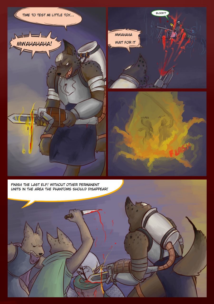 she flung a great spear of thunder at him, and the blade of his weapon flexed to wipe it from the sky. he gave a terrible battlecry as he charged the foul weng, and no sooner did he so, than she drew her rather ordinary looking blade and defended herself. as the blades met, the heros weapon of death gave a last cry of defiance, and was unrought from the world in a flash of flames and the moaning of reality. the gnoll matriarch stood over the blinded warrior, and smote him down.