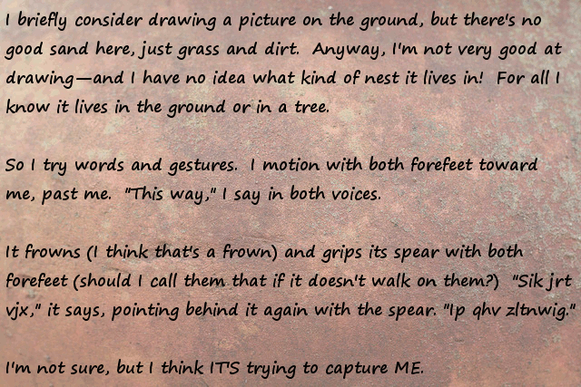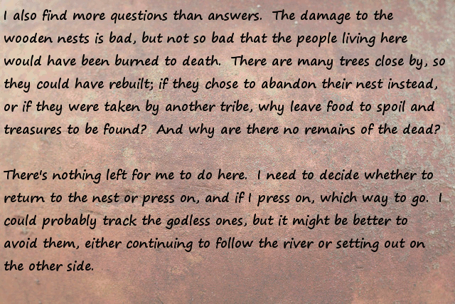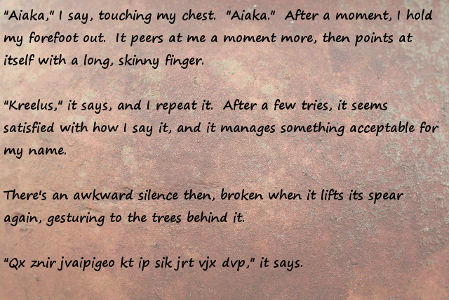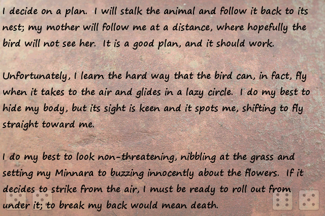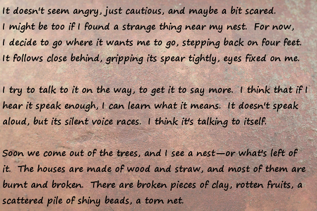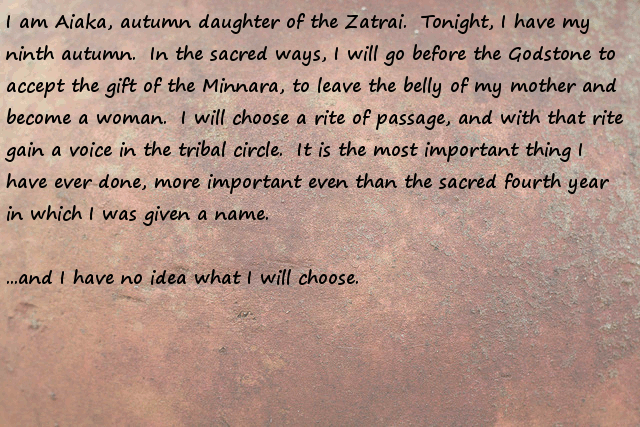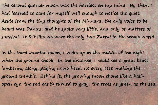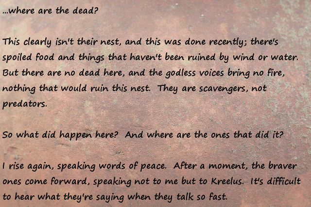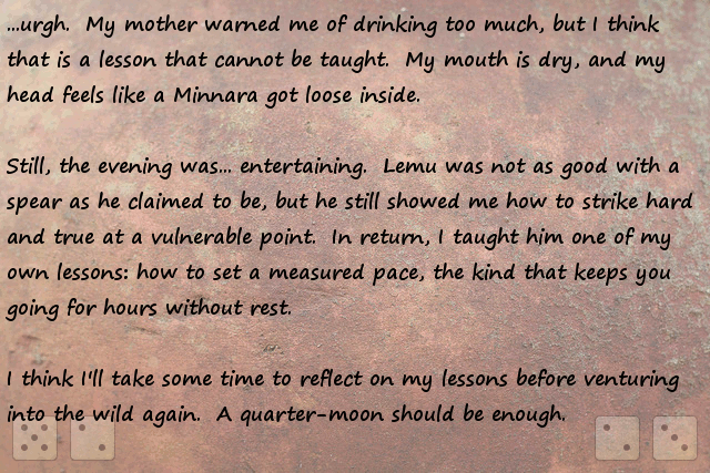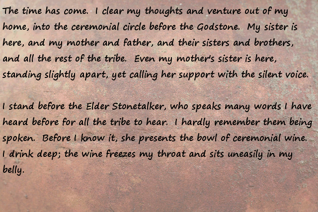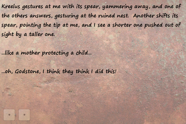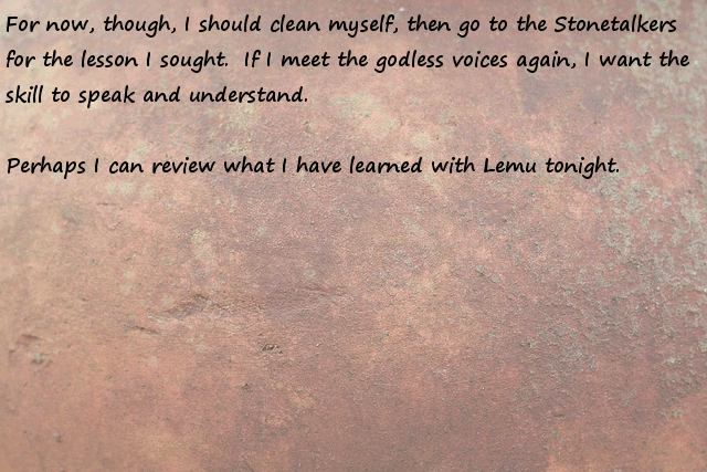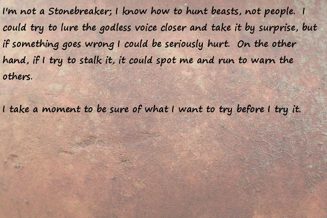 Stonefinder = Is less interesting then I first though, we are talking about finding rare animals and plants for the tribe to cultivate and maybe rare ores... The demon... I bet that is an opposing race of aliens to the ones who gave you the monolith. Still has great potential...