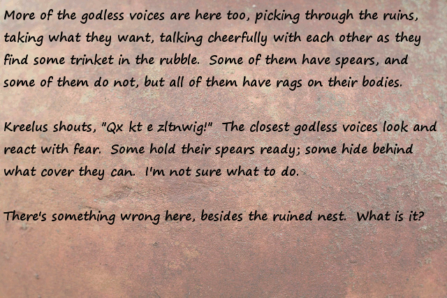 "Godless voices" are members of their race not under the command of the monolith, infidels to conquer.