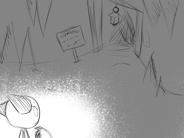 >>328203 Looks like a warning sign. This area was... something. Oh, and it looks like you have a scar on your forehead. I guess we'll have to fumble around with the pendant as your only light.