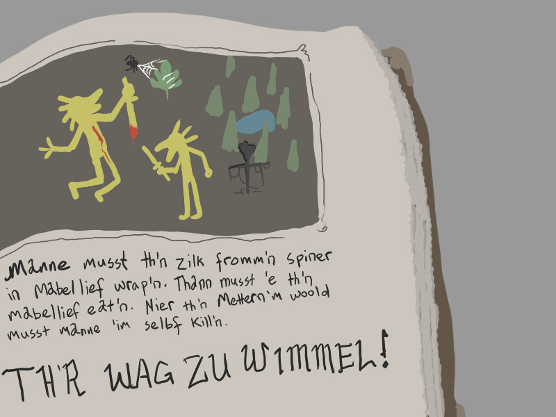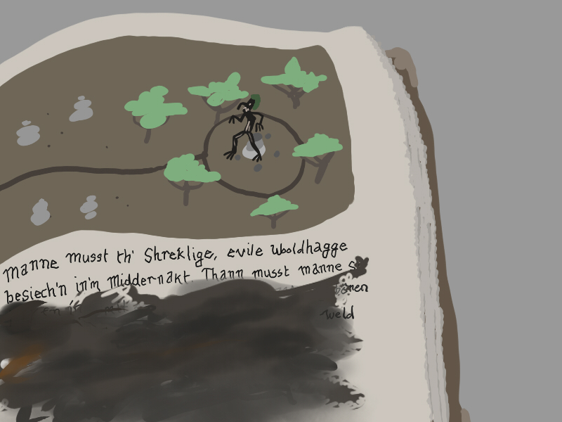 As I was rummaging through, I found this book, Th'r Wag zu Wimmel, or The Way to Whimbly. It tells of a reclusive witch who will grant a single wish to the adventurer who is skilled enough to meet her. The wish comes at the expense of her own life.
