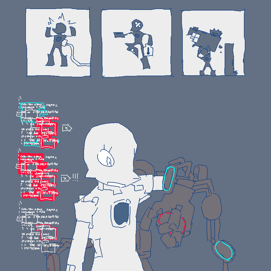 You are being watched by something .. someone. It has never shown aself, but it winds about behind floors, walls, ceilings, in -open space-, and through millions you are too familiar with es gaze. E doesn't seem to respond to anything you do, until now.