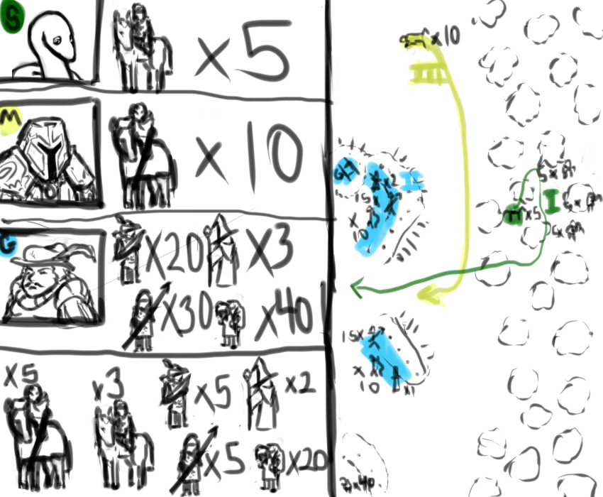 You had 15 heavy cavalry. They were armored horsemen who were professionally trained and well equipped. They worked best in open terrain, and were fairly effective against any other troop type.