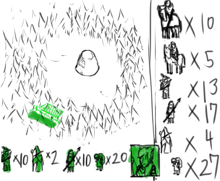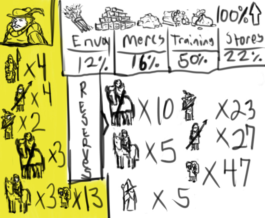 You also had 60 available workers. They were necessary for constructing siege engines, earthworks, and gathering and carrying supplies for infantry and heavy cavalry, generally on a 1-1 ratio at least.
