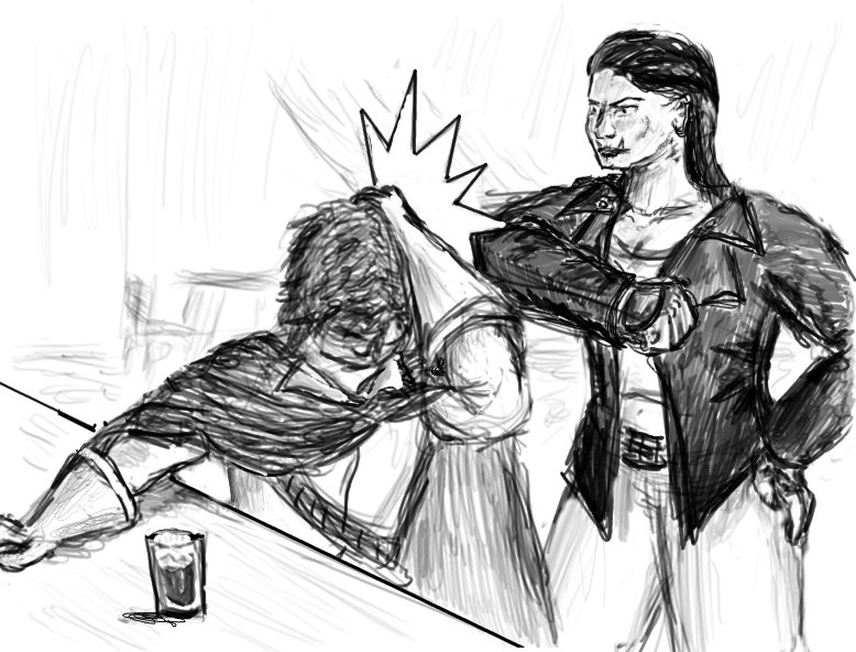T'kuli: "Now what's this about headwounds? Woah! C'mere. Barkeep, get me a water and a whiskey!"
