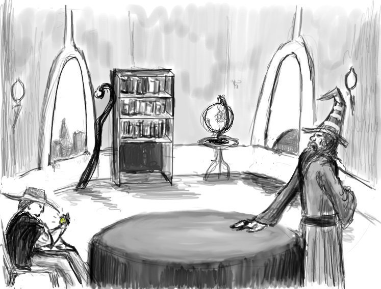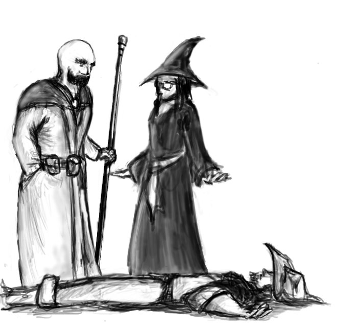 H: "Yeah yeah. Well, y'know, plenty of the usual. Hell of a haul, really. There were two odd bits though. There was a vase in a shrine that was pretty obviously not dwarven, and a ring that some dwarf apparently stuck in the ceiling. I'll have Az take a look at the ring in a bit.