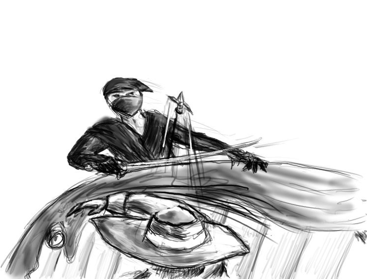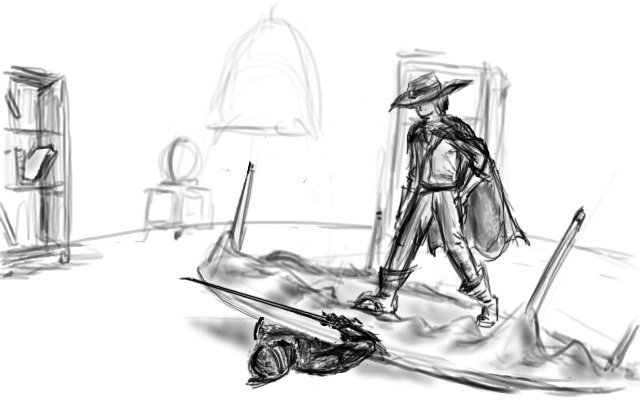 The assassin? I went for the throat. I think I left the knife in him, actually. I'll definitely check him over for clues.... once I can stand again. Eugh.