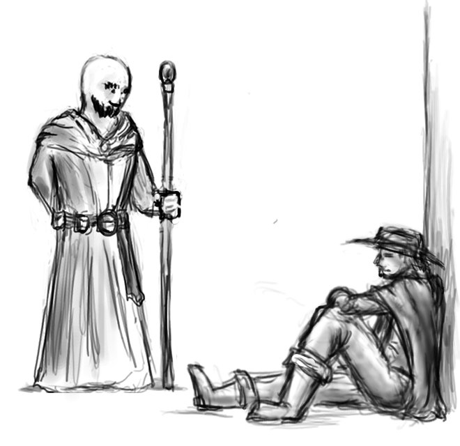 "Er.. you're quite welcome. It is our duty to aid the injured. I would accept a donation, of course, but I would not ask payment for such a service. Instead, may I inquire as to how you came to such a state?"