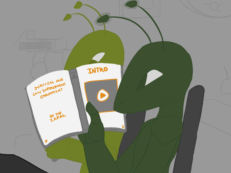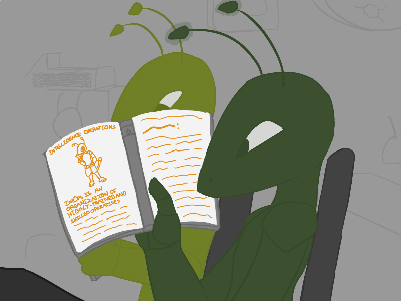 Intelligence Operatives are part of the Anti-Criminal Organization (the ACO), a large government paramilitary organization devoted to what Crilki considers the funner part of the justice system. It is further divided into IntOps and Special Forces. IntOps (Intelligence Operations) fields operatives used to gather intelligence on an area (via infiltration, covert action, even as a mole), before Special Forces are sent in to bust the place up and arrest everyone involved. Special Forces is divided even further into SaltOps and TacOps (Assault Operations and Tactical Operations), which perform joint operations in high-risk situations such as hostage rescue and counter-terrorism in all Koel-aligned planets, space stations, space ships, et cetera.