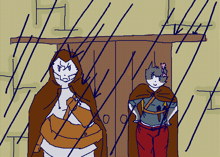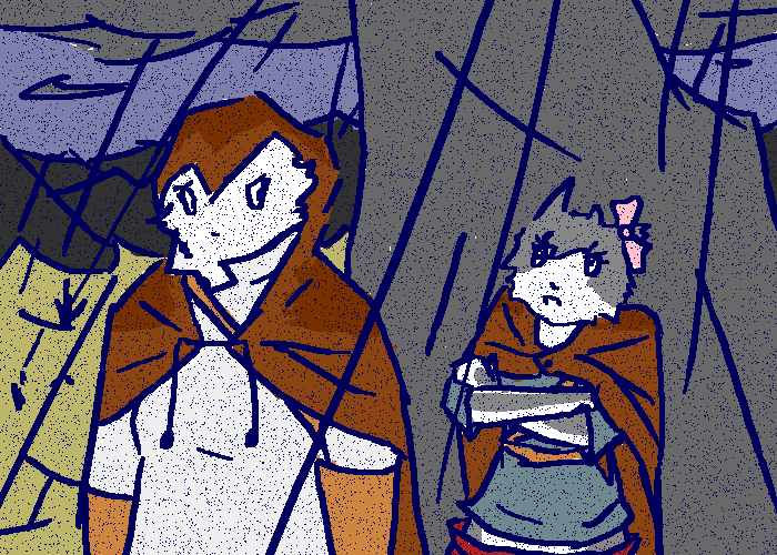 "We could hear them out," the hooded avian says. She turns to the sangsaloj, "Dear, what are you and your friend doing out here?"