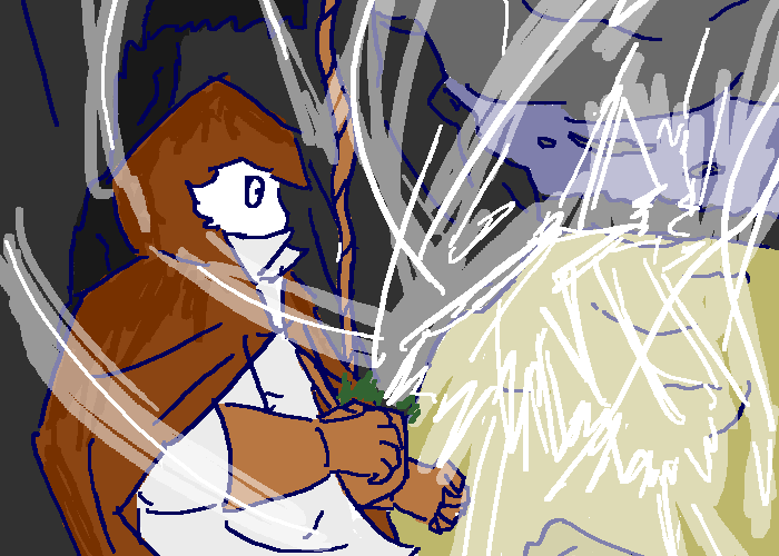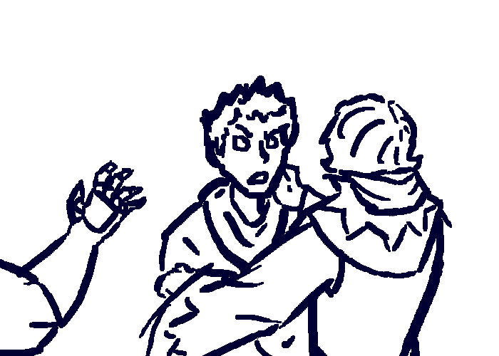 "Shut up, Bries! I'm in charge, so I'll ask the questions!" the leader snaps. He turns his attention to the sangsaloj.