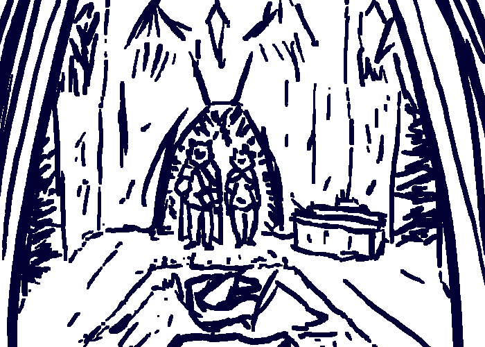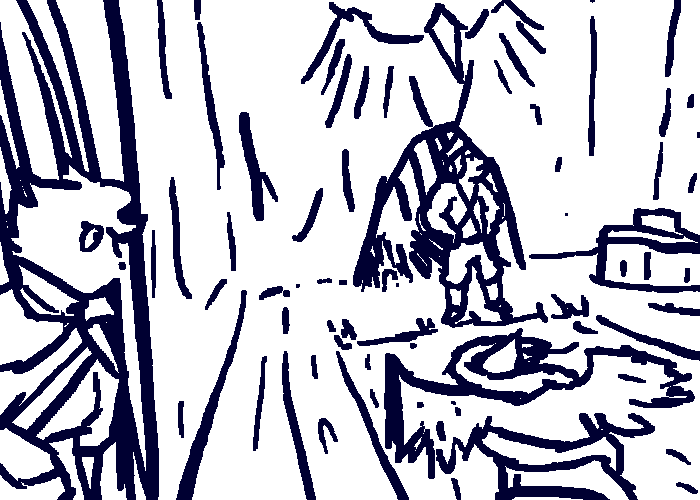 "It would seem that we are at an impasse," the hooded avian says thoughtfully, though the leader, giving her a look borne of seething irritation, seems to take it as a slight against him or his leadership skills.