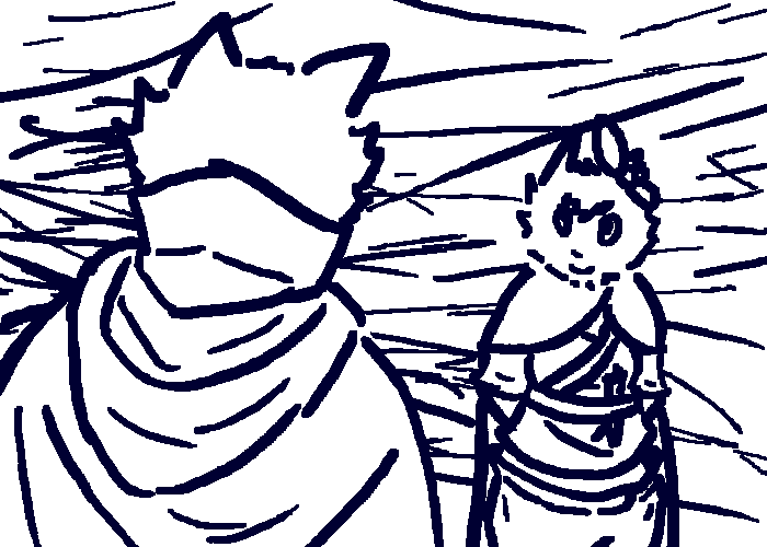 "So do I. Temp!" The leader turns to the aquatic staring silently out over the dunes. "What do you think?"