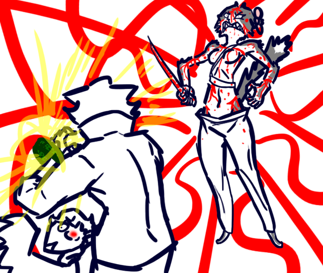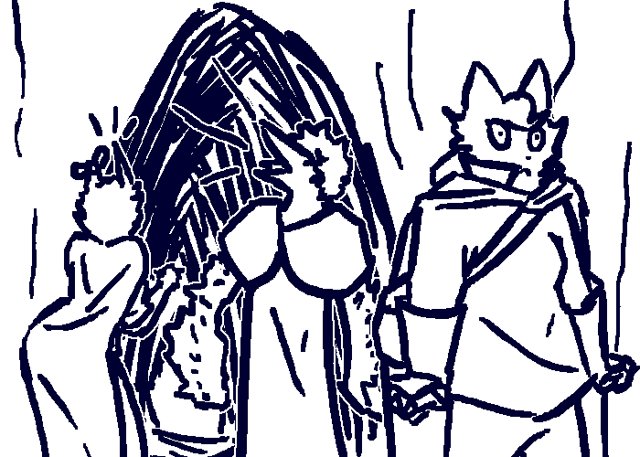 "Hey, a Chatzen is not who I am!" the sangsaloj interrupts. The supposed leader, growing ever more perturbed by the moment, swivels back around to shout at her.