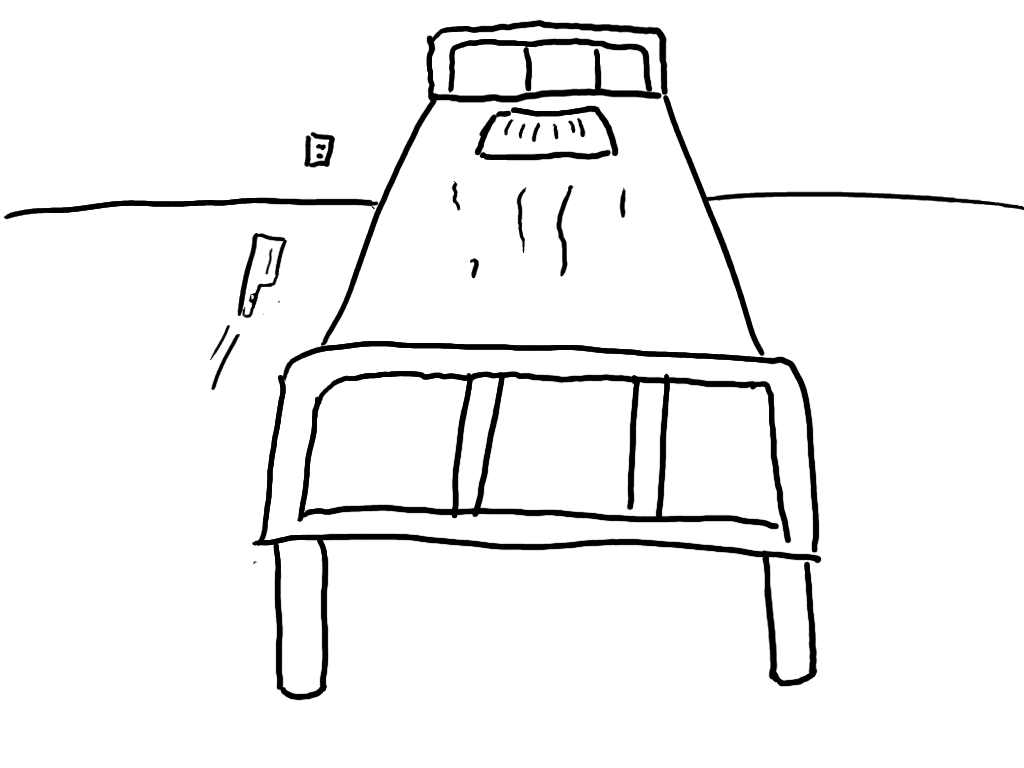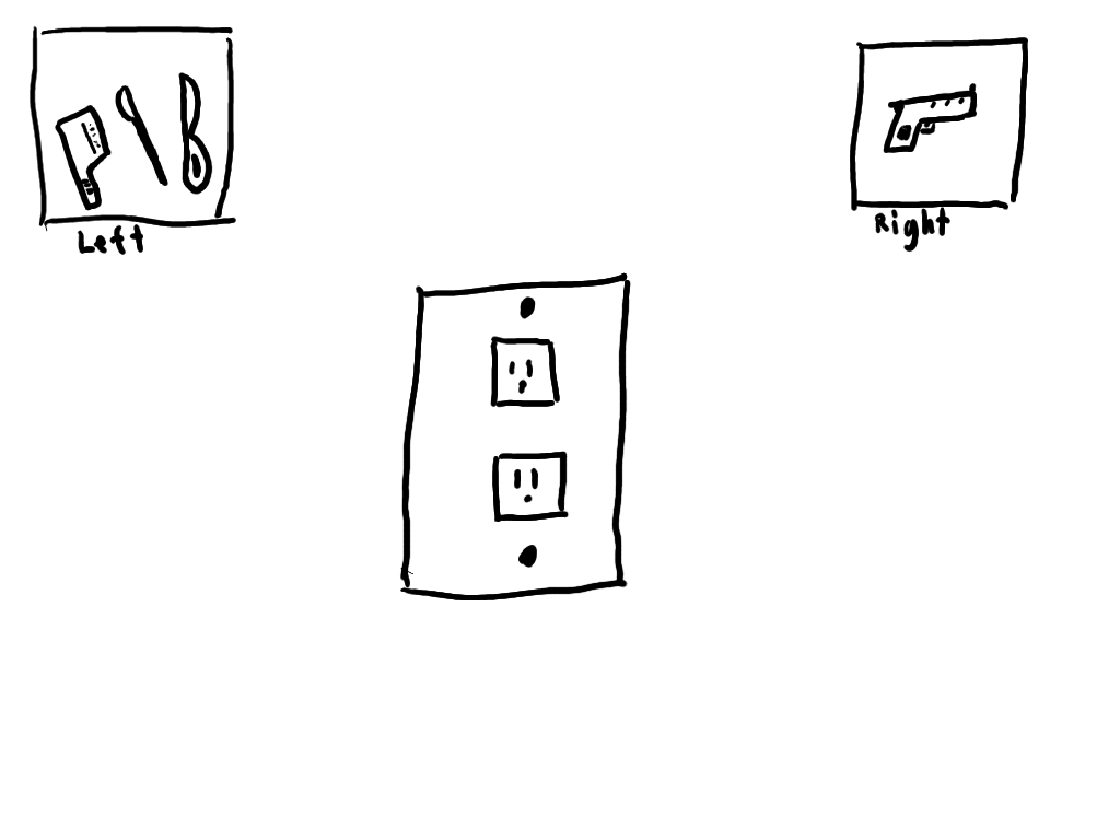 On to the table! As I suspected. A cleaver, a scalpel, and one half of a pair of scissors (would that make it a scissor?) sit on a tray. To its right, lies a suspicious key. Something tells me that I shouldn’t take that. And a OH MAH GOD! YES! I always wanted one of those. Nothing beats the Lozot 2-22 E series! This thing is capable of non-recoil continuous 180 round per minute firing. And it also has that new gun smell too!