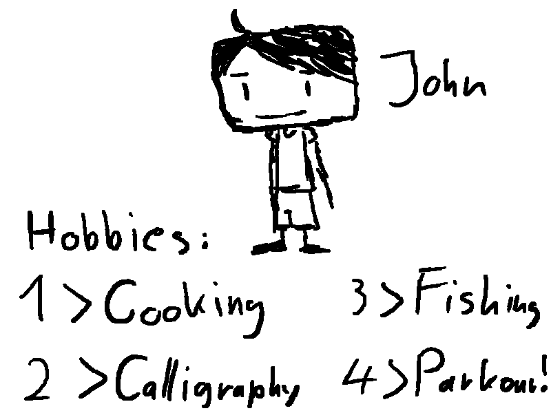 What does John like to do in his free time? Please suggest fou-