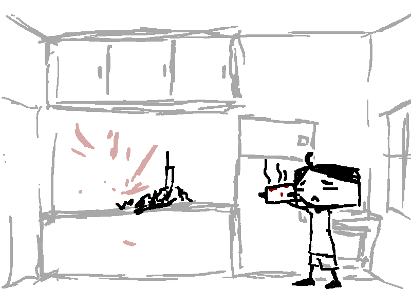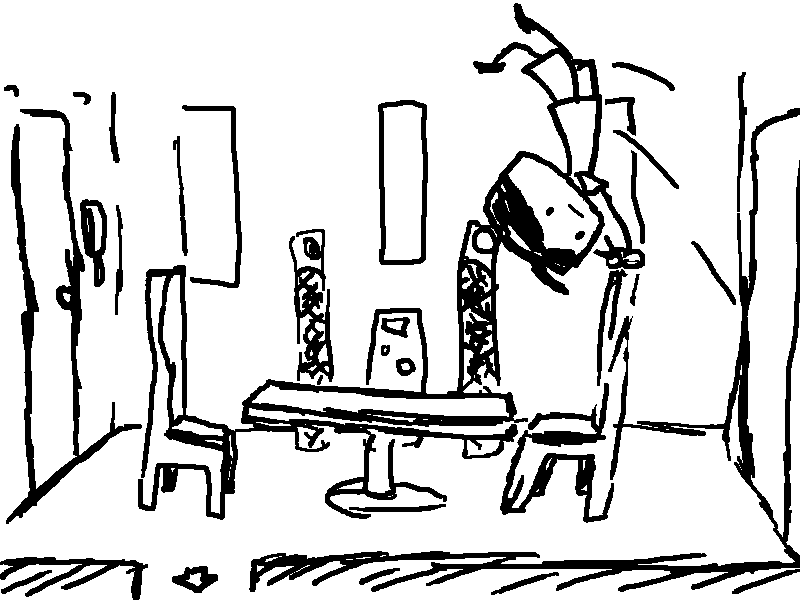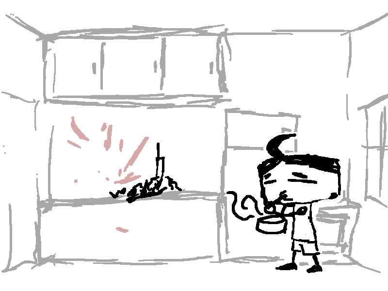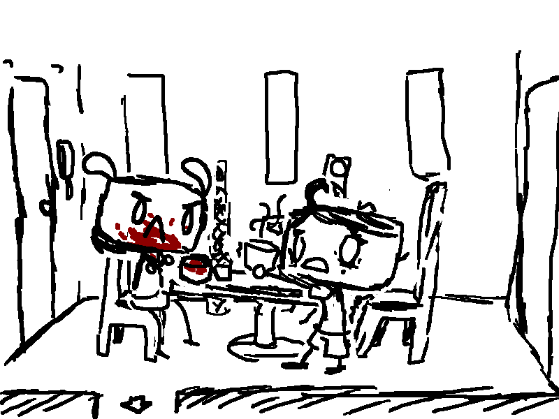 He tells Curly that she doesn't have to get drunk. One drink won't knock her out, after all.