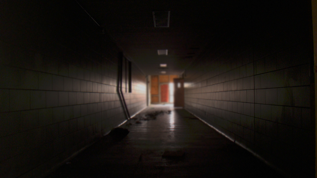 I stumble back out into the hallway, trying not to make too much noise. I decide to put as much distance between me and that pitch-black room as possible, so I make a move towards the left of the hallway. I glance out the window as I pass, and learn that I am merely on the ground floor of this building, not high up like I thought when I awoke.