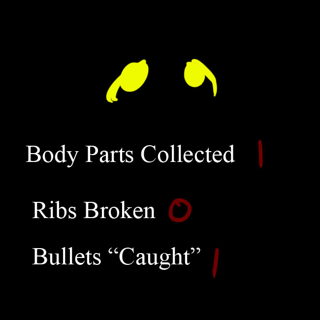 Hey folks, I’ve seem to have sprained my ankle from jumping so far and I’m a bit woozy from blood loss. OK make that REALLY woozy from blood loss. That bullet in my shoulder nicked an artery and I wasn’t able to get a tourniquet on in time to stop most of the bleeding. So I’m scared, tired, and suffering from blood loss. It’s not every day that you plan on being relentlessly hunted. At the moment I'm in a cargo container I been renting for the past month to store my things.