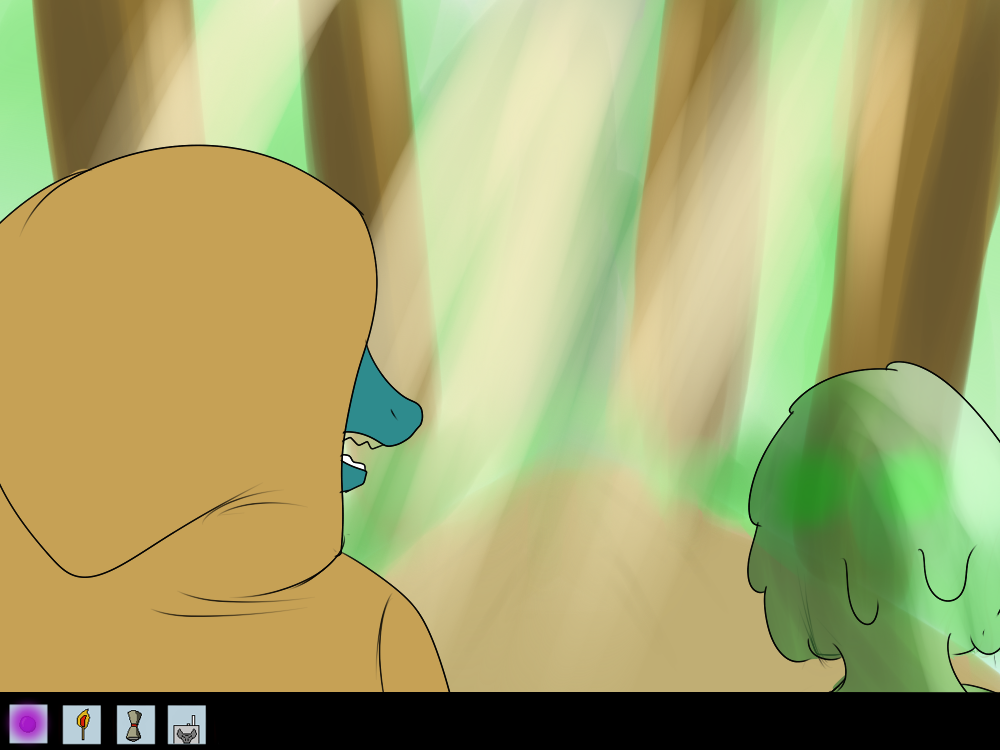 After a few minutes going through the forest, the sun rays peek through the ceiling of leaves above, warming up the jelly mass that is Mechi’s body, making her feel pretty content, despites the misadventures of the past few days. Mirla seems to feel better as well, and soon she flies over the trees to scout around and stretch out her wings freely.
